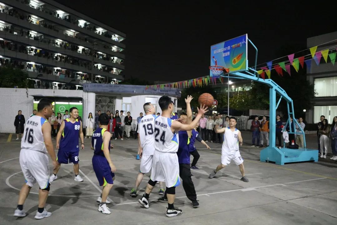 晚上在公司篮球场,公司总经理高军鹏携一众高管莅临开幕式现场并宣布篮球赛正式开始!