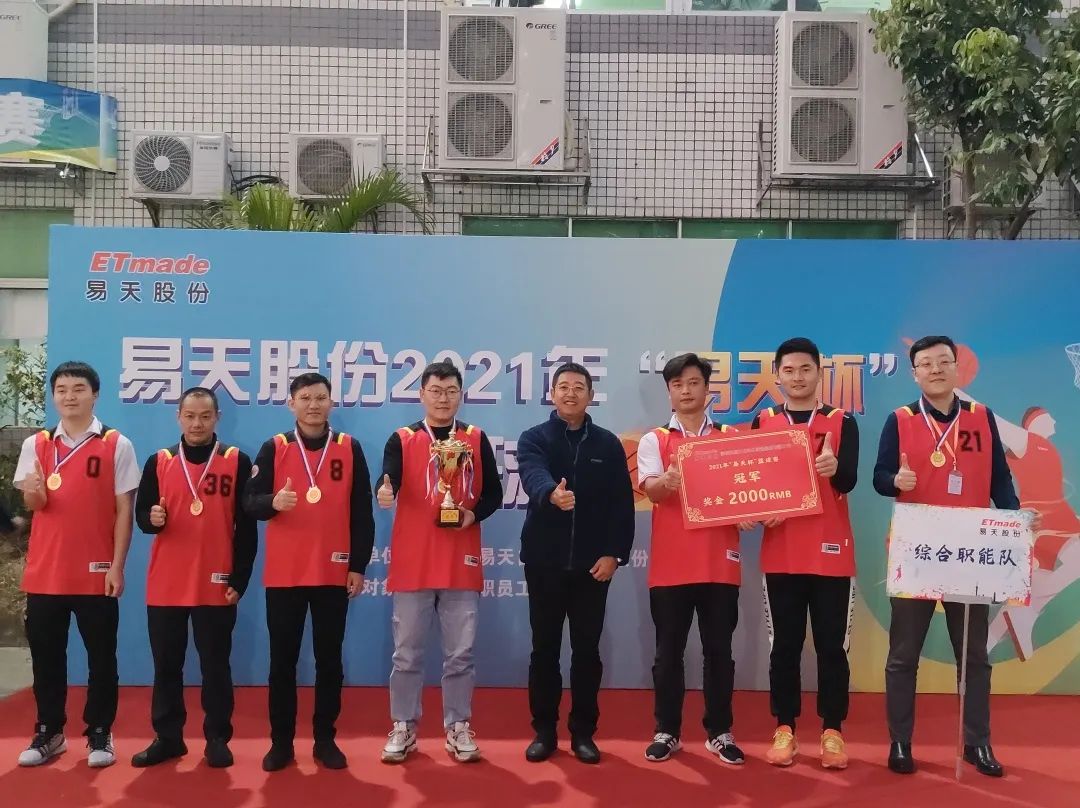 接下来颁发的是本届篮球赛的冠军,邀请公司总经理高军鹏为综合职能队颁奖,奖品为冠军金牌、奖杯、现金2000RMB。